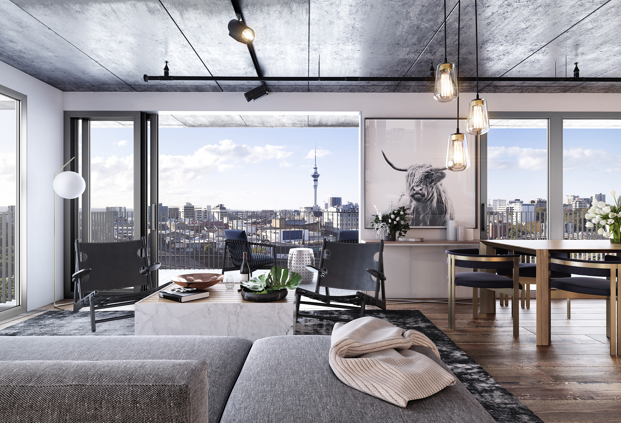 This was Buildmedia’s fourth project for property development company, Urban Collective, and the brief required moody, grungy and wet 3d imagery to help market a brilliant new residential development, in Auckland. Working collaboratively with Urban Collective and Paul Brown Architects, both light and dark colour schemes were created to visualise 59 France, including rendered animation sequences to help complement the full marketing set of computer generated images (CGIs).