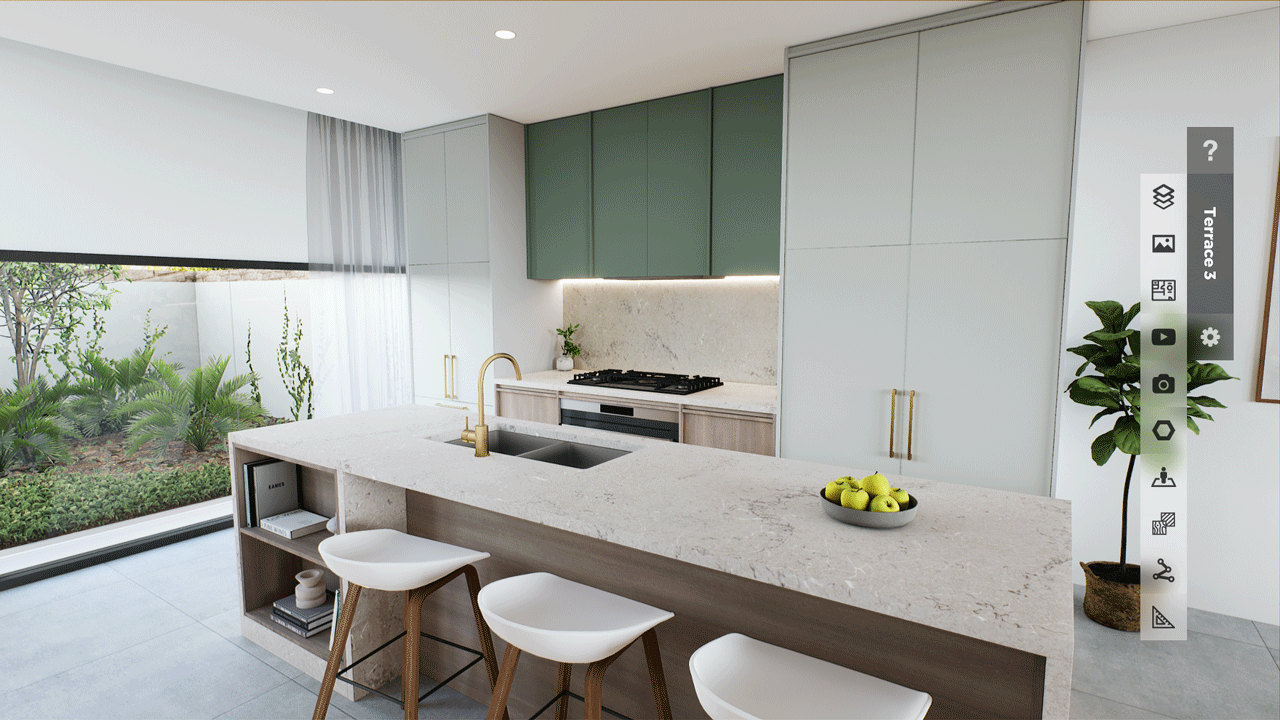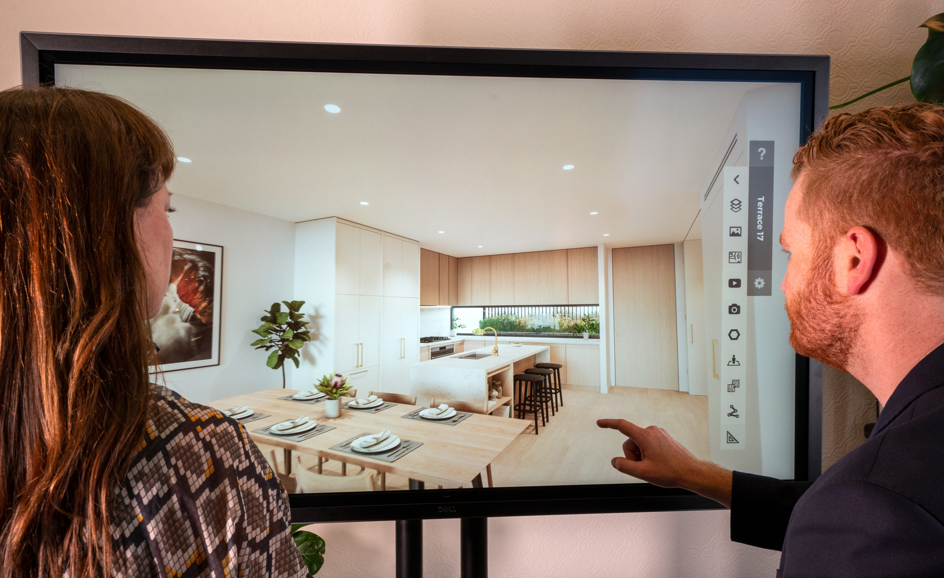 A total of 3x terrace home types in both light and dark colour schemes were interactively showcased within their Realspace interactive display suite.